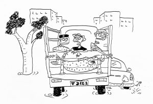 Pas ari pertama taon baru, siang-siang mendung warung anabèl tetep ajé penu, soalnyé nyang kerjé padé perè. Ngapain nggak perè? Pan taon baru! “Iyé, taon baru prihatin,” katé Mang