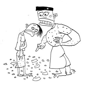 “Utang dicicil paké utang dari nyang ngasi utang, pegimané nalarnyé tuh Lul?” “Ya kuliah ékonomi doeloe.” “Di sini mah sekolé tinggi-tinggi émang biar pinter ngutang.” “Résiprokèl katényé Kab.” Sukab