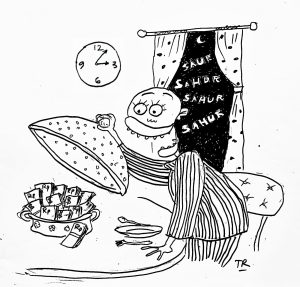 Belon lagéh jam saur, udé penu ajé warung anabèl. Apé sebab Siti Nurhalizah nyang jagé? Tau’ dèh. Tapinyah émang semingkin ca’em si doski. Mèsem dikit ajé, rontok dah iman
